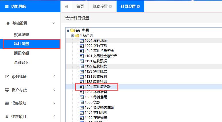 第一步:进入科目设置