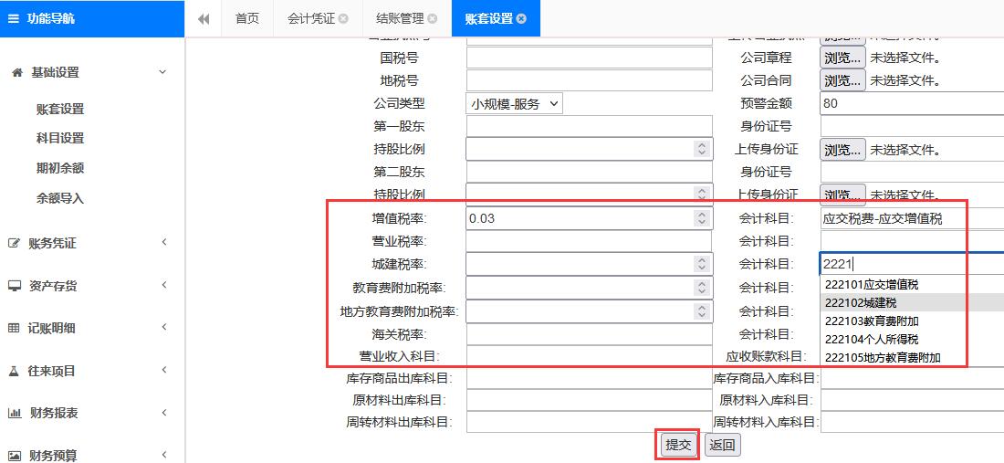 第一步:设置纳税科目
